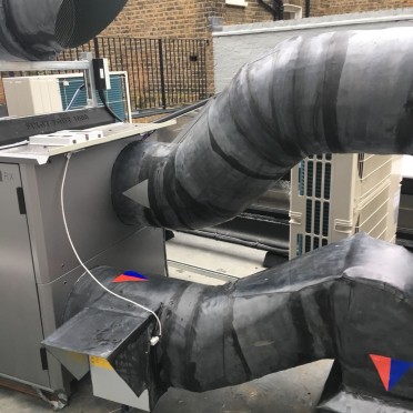 We supplied a Swegon Gold F RX AHU on the flat roof with supply and extract ventilation system serving the ground/basement with exposed Ductwork on show with Lindab DCS ceiling diffusers. We supplied small toilet extraction system to the basement toilets and kitchen area. The system was balanced and commissioned on completion and handover to the client.